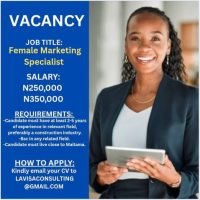 We’re seeking a creative and results-driven Female Marketing Specialist to develop and execute marketing strategies that drive brand awareness, engagement, and conversions. The ideal candidate will have experience in marketing, a strong understanding of market trends, and excellent communication skills.