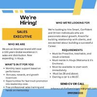 We’re seeking a results-driven Sales Executive to drive revenue growth and build strong relationships with clients. The ideal candidate will have excellent communication skills, a strong understanding of sales principles, and a proven track record of meeting or exceeding sales targets.